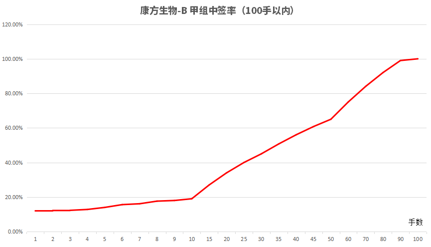 康方甲组打多少手稳中1手?100手。这次当一手党值吗?从以下图表可以看到,打1手和打2-10手的中签概率都是非常接近的,只有打15手起步才可以拉开中签率。所以说1手党相对比较值。
