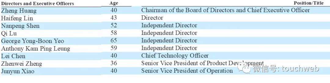 当前,黄峥为拼多多董事长、CEO,腾讯高管林海峰为董事,红杉资本合伙人沈南鹏、前百度集团总裁、COO陆奇及George Yong-Boon Yeo、Anthony Kam Ping Leung为独立董事。