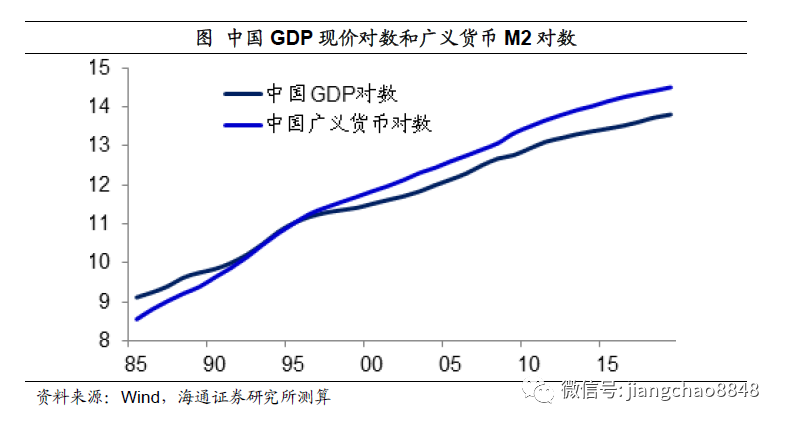 从1990年到2019年,我国的GDP名义值从1.9万亿升至99万亿,年均增幅高达14.6%。而同期的广义货币M2从1.5万亿升至199万亿,年均增幅高达18.3%。