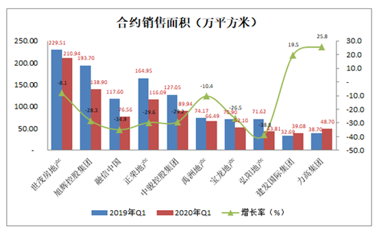 按一季度合约销售总额计,10家企业中的9家毫无悬念的较去年同期下降,仅有建发国际集团(01908.HK)1家成功逆袭,从2019年58.76亿元增长到了2020年的76.82亿元,增加18.06亿元,或30.7%。