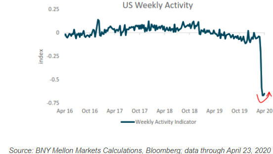 此外经济活动现企稳迹象。纽约梅隆银行外汇和宏观策略师韦利斯(John Velis)在报告中引入了每周活动指标,利用铁路货运、钢铁生产、电力消费、石油需求、消费者信心和零售销售的数据跟踪美国经济的实际活动,显示美国经济似乎已经见底。随着佐治亚州24日率先全面重启经济,复工后的疫情防控效果成为焦点。