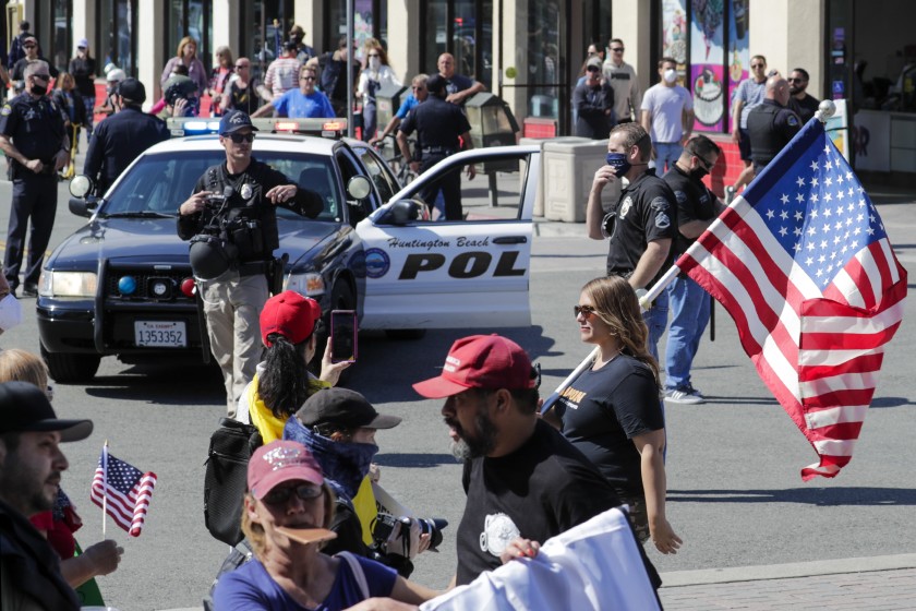 在过去的几天里,加州地区包括萨克拉门托、圣地亚哥、纽波特海滩和亨廷顿海滩等地,都发生了反对“居家令”限制的抗议活动。橙县执法人员也表示,该县的一名男子因涉嫌在亨廷顿海滩的抗议活动期间,用刀威胁当地新闻媒体摄影师而被警方逮捕。(央视记者 许弢 许骁)