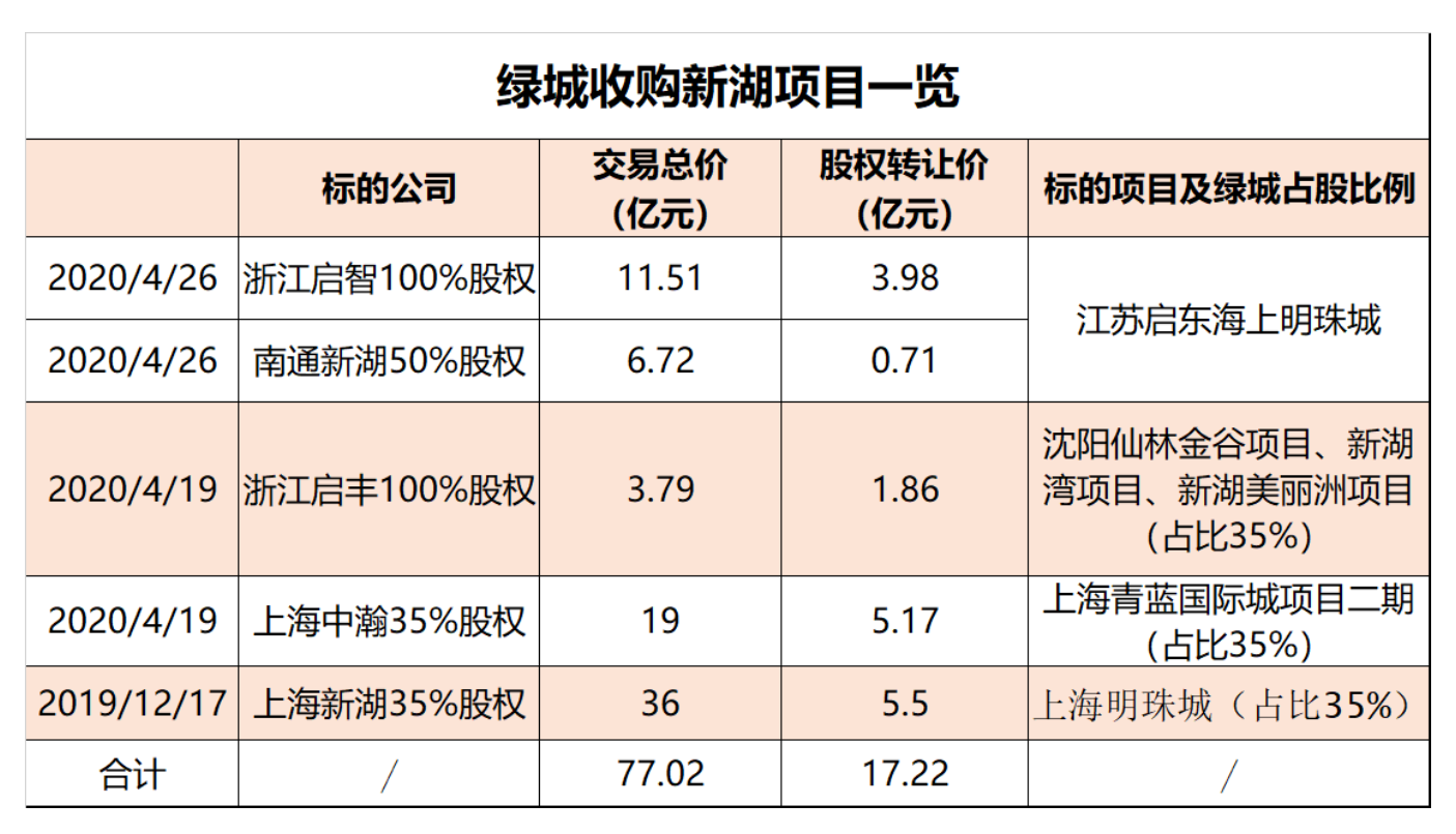 据此,连同此前出售的项目,绿城共计接盘新湖中宝位于上海、沈阳、江苏启东的6个项目,交易总价77亿元。