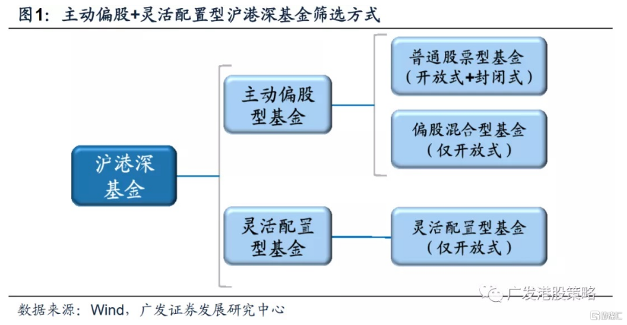 全部沪港深公募基金中,我们以「主动偏股型+灵活配置型」为考察对象,以主动投资(偏股配置)+灵活配置为口径筛选,对沪港深基金配置与持仓情况进行分析。(下文沪港深基金均采用以上口径)