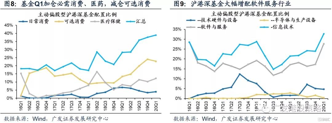 (1)消费行业内部分化,必需消费、医疗保健对疫情「低敏感」,获沪港深基金小幅加仓,但可选消费行业热度下降;