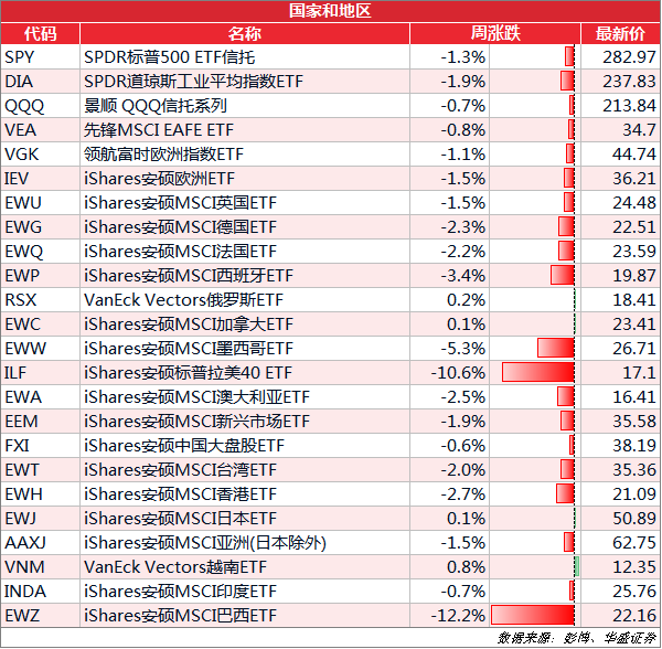 除“抗跌王”越南ETF和俄罗斯、加拿大之外,上周环球股市基本录得下跌。