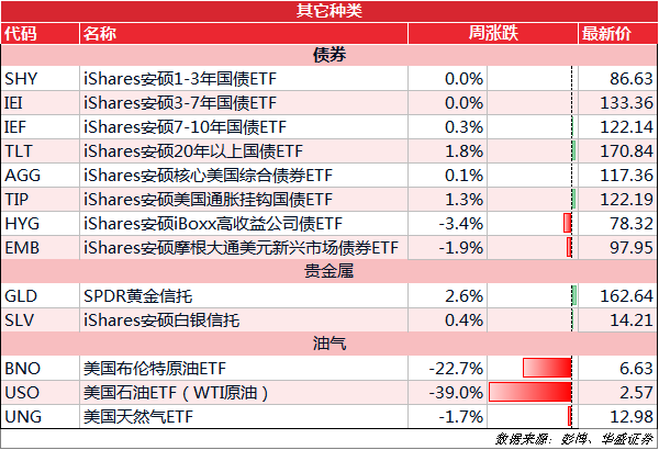 高收益公司债基金LQD继连续4周上榜后,上周终于未出现在前十榜单。