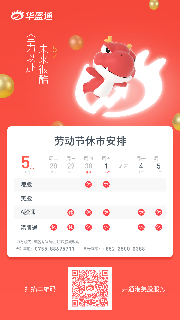 本周四和周五迎来“佛诞节”与“劳动节”,港股市场合计休市2天。港股通自本周二(本月28日)开始关闭,至下周三(5月6日)恢复。美股市场不受影响,本周照常开市,在享受愉快的长假之余,记得留意夜间的美股行情。
