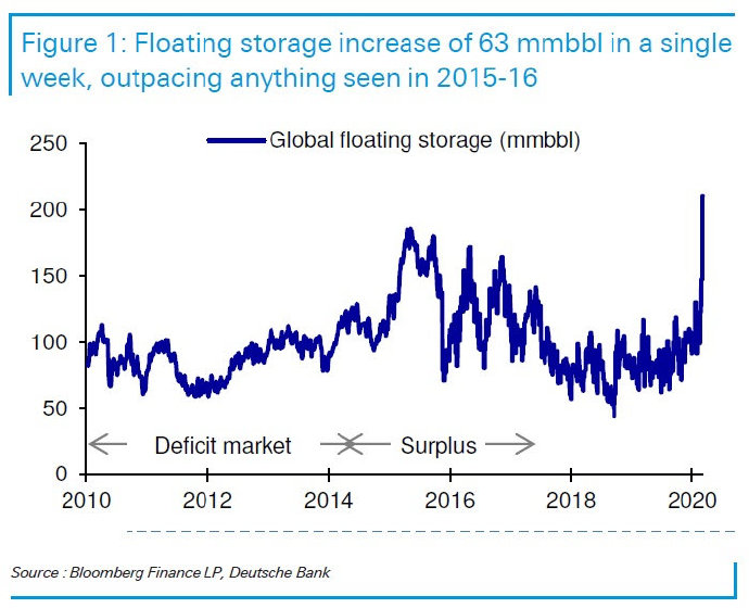 德意志银行称,浮式存储的速度非常快,一周就能达到6300万桶,比2015-16年那次速度快得多: