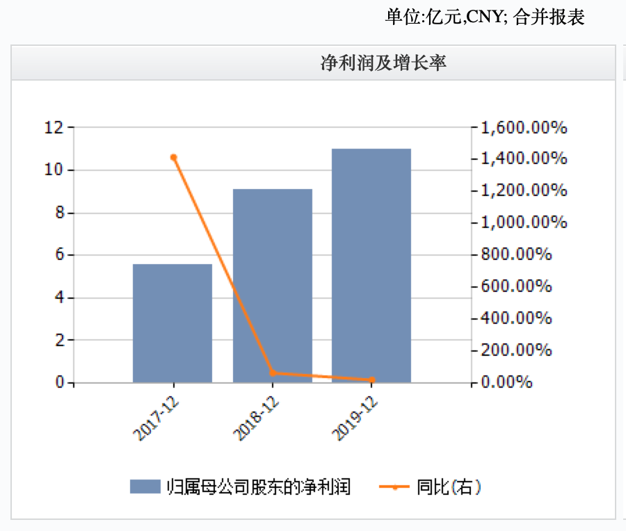 Wind数据显示,2017年-2019年,阅文的净利润分别为5.56亿元、9.11亿元、10.96亿元,增长率分别为1416.04%、63.75%、20.4%。