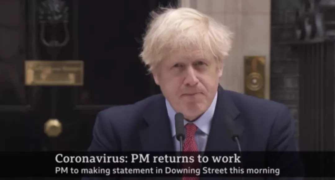 当地时间27日,英国首相约翰逊正式开始恢复全职工作。在正式投入工作之前,约翰逊在唐宁街10号发表了他“复工”后的第一份电视声明。他表示,新冠病毒对英国来说仍然是巨大的挑战,不希望英国承受第二波疫情暴发。