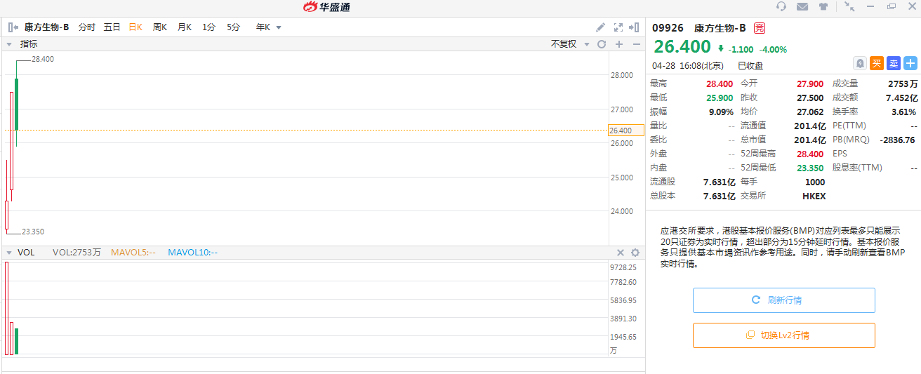 其次是上市前有中国生物制药和正心谷领投,由清池资本、奥博资本等9家著名基石投资者进入的康方生物-B。康方生物在4月24日正式登陆港交所,发行价为16.18港元,截至4月28日收市,3个交易日最大涨幅超过75.5%!