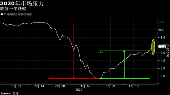 截至3月份的第三周,衡量股票、债券和货币市场压力的彭博美国金融状况指数在经历了一个月的下跌,之后在随后的一个月里收复了一半的跌幅。