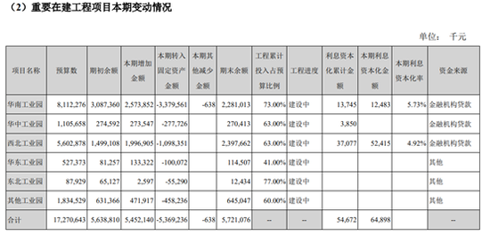 目前,公司有多个尚在建设中的工业园。报告期内,公司主要在建工程增加金额约54.52亿元,主要为汽车业务投入增加。动力电池方面,公司表示已“通过动力电池产能的快速扩张建立起领先的规模优势”。手机部件及组装业务方面,公司长沙基地于年内建成投产,中山、西安等新基地在建设中,东南亚地区的生产基地开始投建。