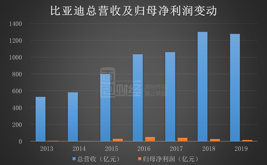 诚然2018年以来的车市寒冬给公司经营带来一定压力,但放诸行业,2019年汽车行业整体销量降幅为8.2%,作为头部自主车企,比亚迪跑输行业。财务数据来看,在2019年营收停止增长前,比亚迪已出现增收不增利的情况,净利润在2017至2019年连降三年。