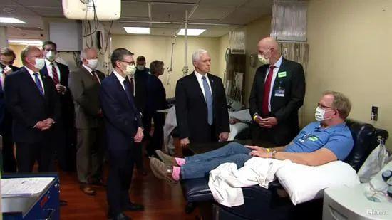 北京时间29日消息,美国副总统彭斯周二视察了梅奥诊所(Mayo Clinic),没有佩戴口罩,尽管院方告诉他,访客和所有其他人都需要戴口罩以减缓新冠病毒的传播。照片显示,在彭斯访问期间,他周围一度有10个人,包括一名患者,他们都戴着口罩,而站在中间的彭斯却没有佩戴,显得非常突兀。作为美国政府新冠病毒工作组的负责人,彭斯事后对记者表示,他不需要戴口罩,因为他定期接受病毒测试,而且没有感染。根据梅奥诊所的规定,所有患者、来访者和工作人员必须戴口罩或面罩,以减缓新冠病毒的传播。该医院表示,口罩要求是其“确保您的安全”协议的一部分。该医院在推特上发帖称,在彭斯参观之前,已明确通知他需要戴口罩,但大约半小时后删除了这条推文。