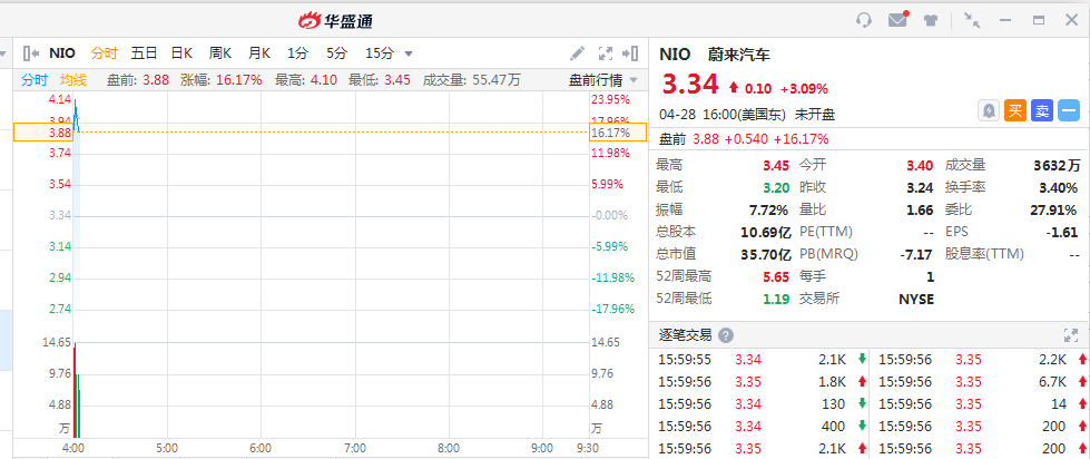 香港万得通讯报道,蔚来盘前股价大涨逾20%。