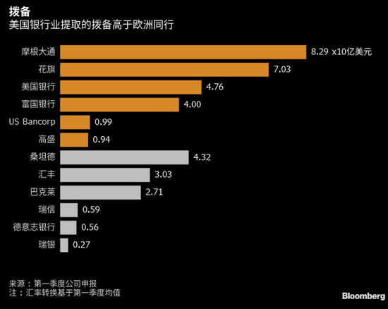 美国的银行相对激进,六家大银行拨备了260亿美元。欧洲略逊色,迄今已经发布财报的六家大银行拨备了115亿美元,英国的银行和西班牙桑坦德银行名列前茅。
