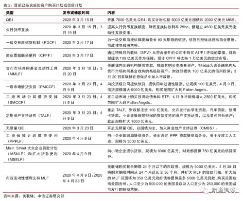 目前美国的货币政策工具包括QE、央行货币互换和针对一级交易商、存款类金融机构、外国银行、小微企业和市政债的各类流动性安排。预计后续针对疫情冲击较为严重的小微企业将会增加和扩充流动性安排。