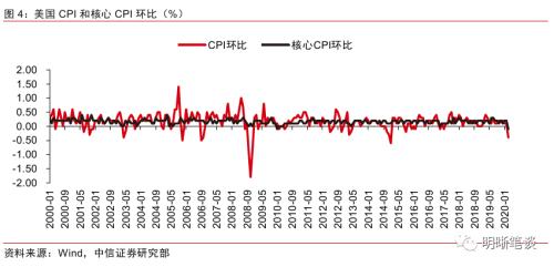 通胀方面,受疫情影响,美国3月份通胀大幅走弱,仍未达到通胀目标。美国3月季调后CPI同比为1.5%,低于预期值1.6%,前值为2.3%;环比为-0.4%,低于预期值-0.3%,前值为0.1%,CPI环比创下自2015年1月以来的最大跌幅。季调后核心CPI同比为2.1%,低于预期值2.3%,前值为2.4%;环比变动-0.1%,低于预期值0.1%,前值为0.2%。总体来看,3月美国CPI整体差于预期,CPI的走弱一方面来自原油价格的大幅下跌,3月季调后能源分项CPI环比为-5.8%,创下自2008年12月以来的新低;另一方面则是由于疫情的冲击,交通运输和酒店类价格下降明显,服装分项价格也有较大下降。季调后外宿分项CPI环比为-6.8%,前值2%,大幅下降;交通运输分项环比-2.9%,前值-0.5%。PPI方面,美国3月PPI环比-0.2%,略好于预期值-0.4%,前值为-0.6%;同比0.7%,差于预期值0.5%,前值1.3%。美国3月核心PPI环比0.2%,略好于预期值0%,前值-0.3%;同比1.4%,略好于预期值1.2%,与前值持平。总体来看美国3月PPI略好于预期值,但仍然较为低迷,PPI环比仍然为负值。核心PCE方面,一季度美国核心PCE物价指数年化环比升1.8%,预期升1.4%,前值升1.3%;一季度核心PCE物价指数同比升1.8%,前值升1.6%。虽然核心PCE同比略有回升且好于预期,但仍未达到美联储2%的政策目标。