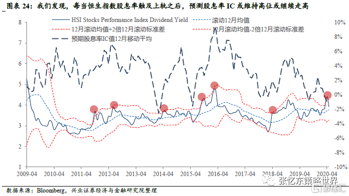 2020年 3月 31日恒生指数股息率达 4.41%,这一数值突破我们模型构建的股息率运行值上轨,符合局部极值的判断,因此,我们认为当下是配置港股高股息股票的好时机。同时,建议采用我们上述构建的质量加强预期股息率因子组合,以规避上市公司超预期减少分红的风险,如此,策略胜率更高。