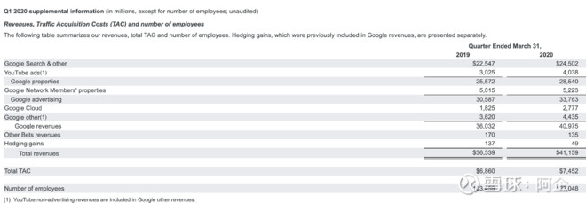 谷歌的其它业务包含了硬件(pixel等硬件、google play 以及youtube非广告收入等),一季度也有44亿美元了,占总营收的约11%。