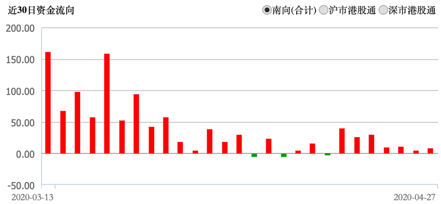 截至4月30日,南下资金本月净流入194.80亿港元,其中沪市深港通流入107.59亿港元,深市深股通净流入87.21亿港元;北上资金本月净流入532.58亿元,其中沪股通流入236.96亿元,深股通流入295.61亿元。