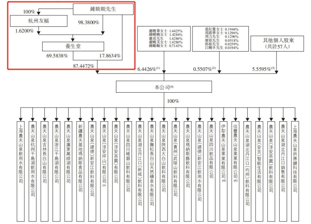 农夫山泉IPO前,钟睒睒持有农夫山泉约87.44%的股份,包括约17.86%的直接权益以及通过养生堂持有的69.58%的间接权益。