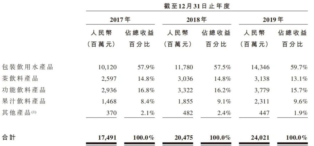2017年至2019年,农夫山泉的收入分别为174.91亿元、204.75亿元和240.21亿元(人民币,下同),年复合增长率为17.2%,高于同期中国软饮料行业5.8%以及全球软饮料行业3.1%的增速。