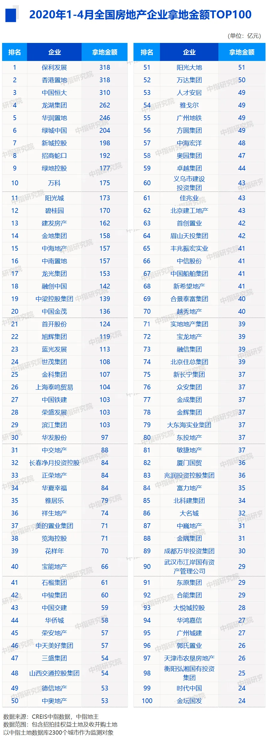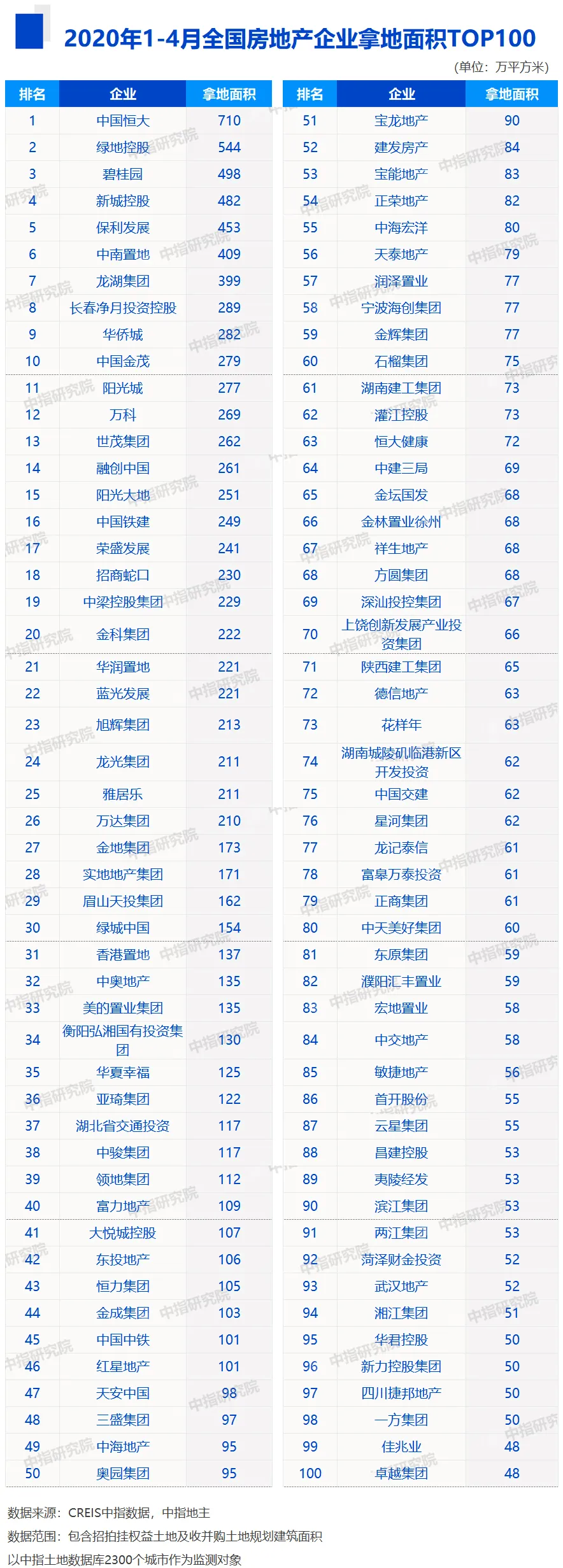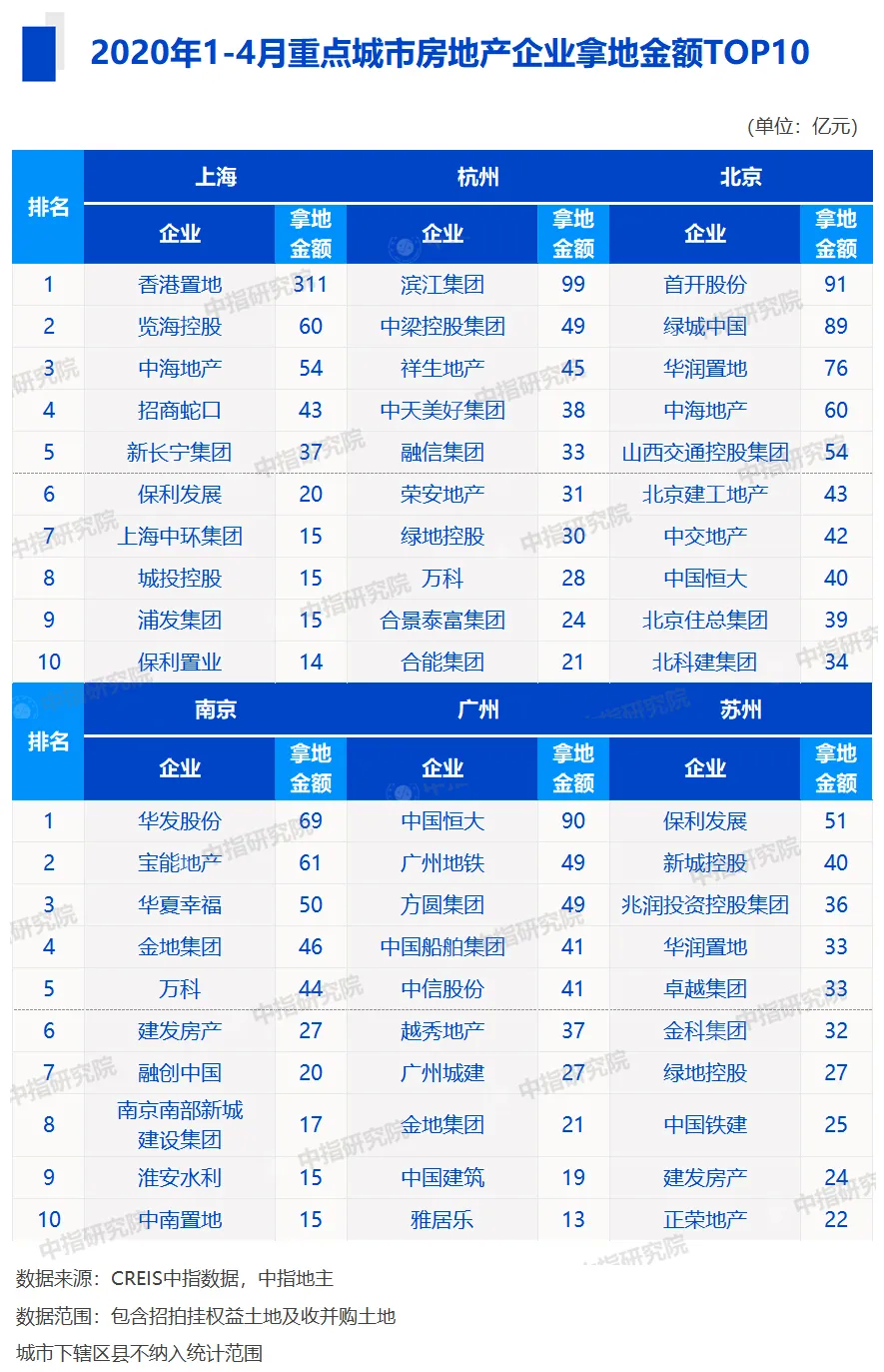 2020年伊始,突发的卫生事件为各行业均带来一定冲击,部分城市的土地推出放缓或暂停。受此影响,房地产企业面对销售承压带来的资金紧张,投资拿地也更加谨慎,但此时亦成为部分资金较充裕的房企积极补仓或“超车”的较好时机。房企土地储备规模与结构对业绩的影响持续加大,新的市场竞争格局正在重塑。在此背景下,中指研究院对房企拿地情况进行研究,关注房企在土地一二级市场拿地的最新动态与热点,为研判行业趋势提供参考。