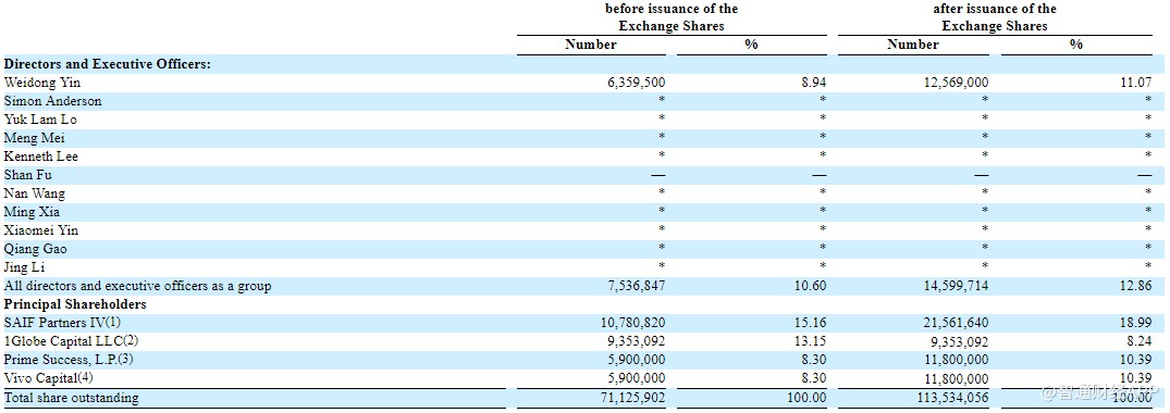 此外,根据2017年6月27日向SEC递交的13D文件显示,SAIF Partners IV在股票发行后的持股数为21,561,640股,占比为18.99%。