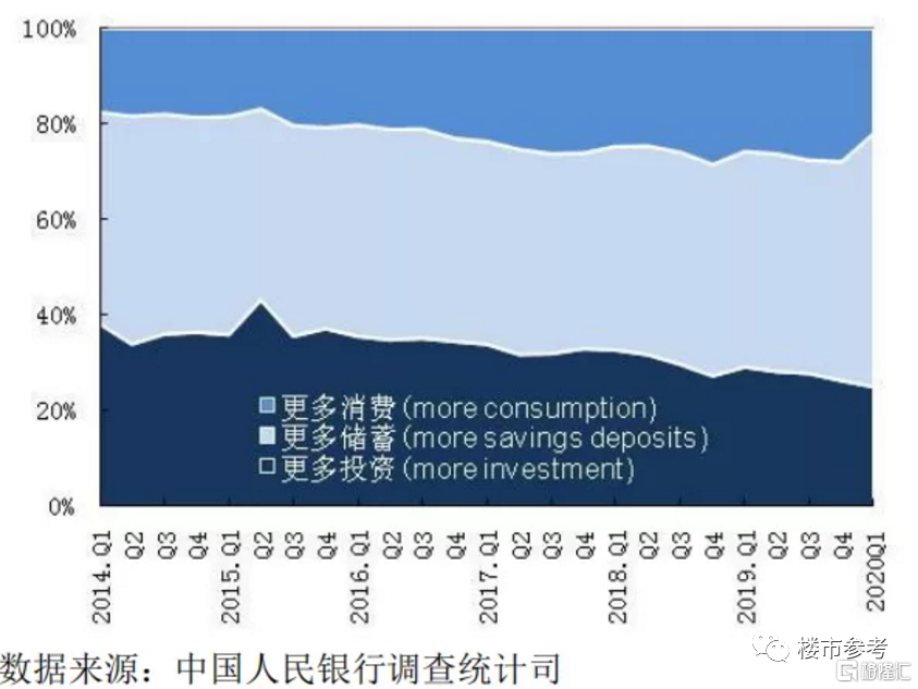 基于收入下降,及未来不确定性对收入的抑制,国人更加看重流动性最强的现金资产。如倾向于“更多储蓄”的居民占53.0%,环比上升7.3个百分点;