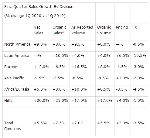 高露洁棕榄(CL.US)公布2020年Q1业绩显示,期内净销售额为41亿美元,市场预期为40.88亿美元,去年同期为38.84亿美元,同比增加5.5%。净利润为7.15亿美元,市场预期为6.19亿美元,去年同期为5.6亿美元。