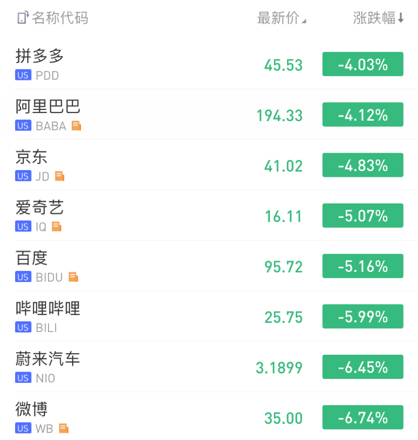 华盛资讯5月1日讯,中概股今夜惨遭屠戮,热门股跌幅远超大盘。截至发稿,拼多多、阿里巴巴均跌超4%,爱奇艺、百度跌超5%,微博、蔚来汽车跌超6%。中概股本轮下跌,或与大市悲观有关。早前,美联储主席鲍威尔称经济复苏会比“W”型更曲折。