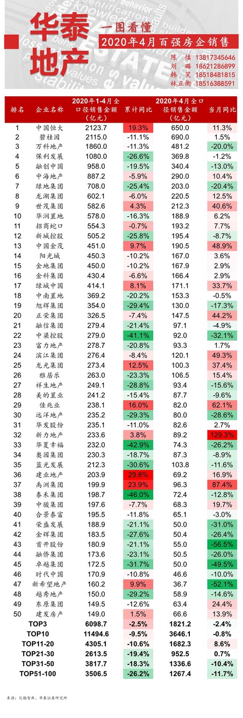 点评:恒大4月数据符合股东预期。碧桂园是真厉害。恒大大张旗鼓使出洪荒之力,碧桂园不声不响,前四月累计销售竟然差不多了。当然在年初,市场是不看好恒碧的成长性的。万科四平八稳,每个季度末发一下力。融创上半年一向是淡季。从行业整体来看,市场回暖还是不错的。行业好,房企才会好,也有利于拉动GDP。