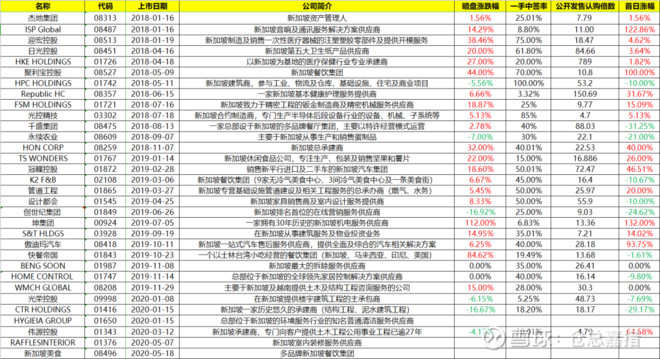 俗话说,坡村易妖。下面从另外一个维度——国别来看看新加坡新股的表现,总体来看,17张10跌,特别是从去年快餐帝国后,新加坡的股票表现就特别弱,直到最近才出了个伟源还算不错。总之,坡村的股票特别刺激。