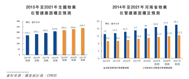 河南省商品房销售额从2014年的人民币3,441亿元增至2019年的人民币9,010亿元,年复合增长率为21.2%,高于同期中国整体年复合增长率15.9%。商品房供应量的增加将支持对于物业管理服务的需求增长。