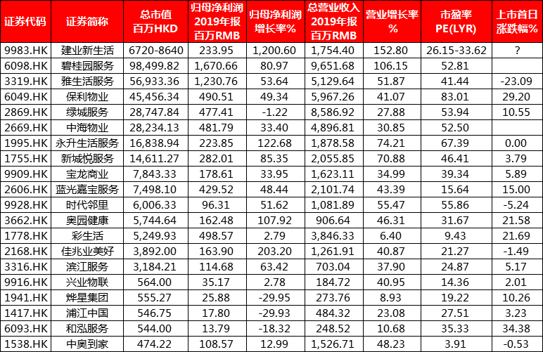 考虑到目前港股市场对于未来增长确定性好的物业股整体估值较高,香港上市的物业公司中游以上的估值水平区间为40至80,这样看来建业新生活上市后还有不小的上涨空间。