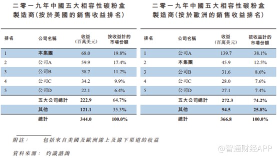 就美国市场而言,中国五大兼容性碳粉盒制造商(按于美国的收益排名)占总市场份额约64.7%。公司于2019年排名第一,占市场份额约19.8%。就欧洲市场而言,中国五大兼容性碳粉盒制造商(按于欧洲的收益排名)占总市场份额约74.2%。公司亦于2019年排名第二,占市场份额约12.5%。整体来看,公司在海外市场中的市场份额还是比较有保障的。