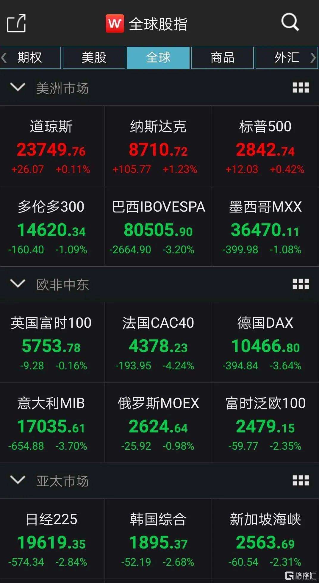 美股则低开高走,道指早盘一度下跌逾360点,但尾盘拉升,最终美国三大股指悉数收涨,道指收涨近30点,全日振幅约400点。科技股领涨,微软涨2.45%,苹果涨1.4%,特斯拉涨超8%。航空股普跌,美国航空跌7.7%。巴菲特承认已清空全部航空股,令航空股承压。截至收盘,道指涨0.11%报23749.76点,标普500涨0.42%报2842.74点,纳指涨1.23%报8710.72点。