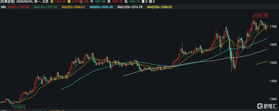 周一现货黄金回到1700关口上方,分析认为,因市场风险情绪降温,欧洲股市全线大幅低开,一定程度支撑金价走势。