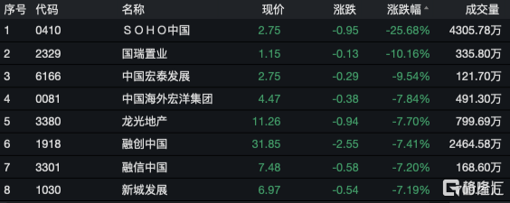 內房股同样受挫,融信中国、融创中国跌超7%,中国恒大跌超4%。