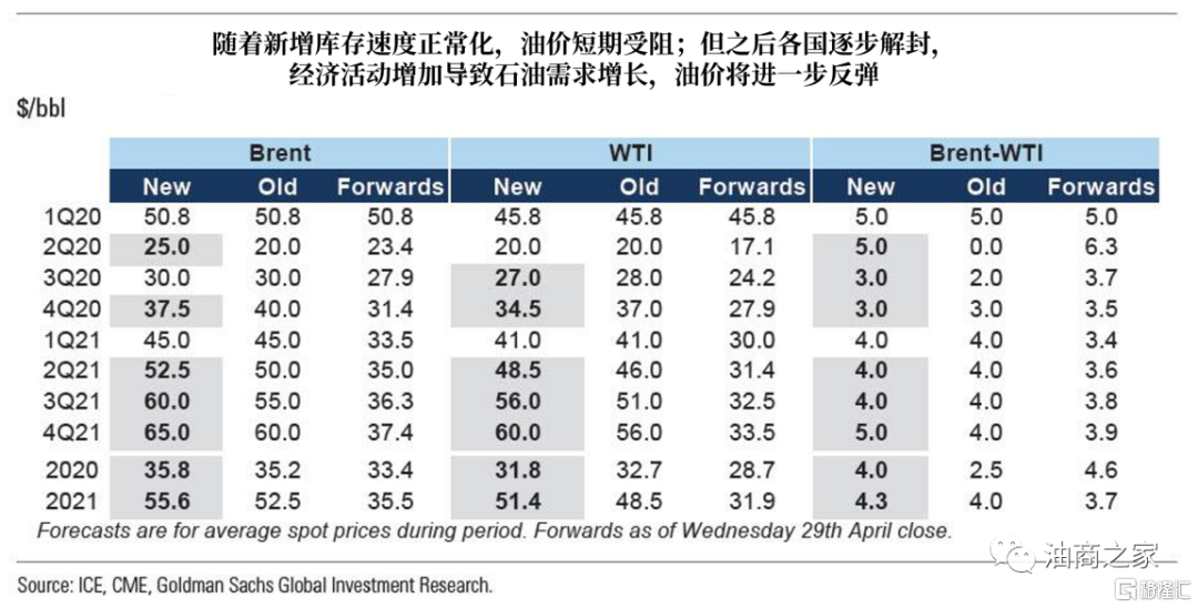 高盛此前曾发布报告称,预计2020年第二季度全球石油供给过剩为860万桶/日,届时全球1.2亿桶石油储能将被耗尽,因此高盛的分析师预测WTI原油将跌至负数,几周前也确实成为了现实。但近期高盛大宗商品研究部门开始看涨原油。