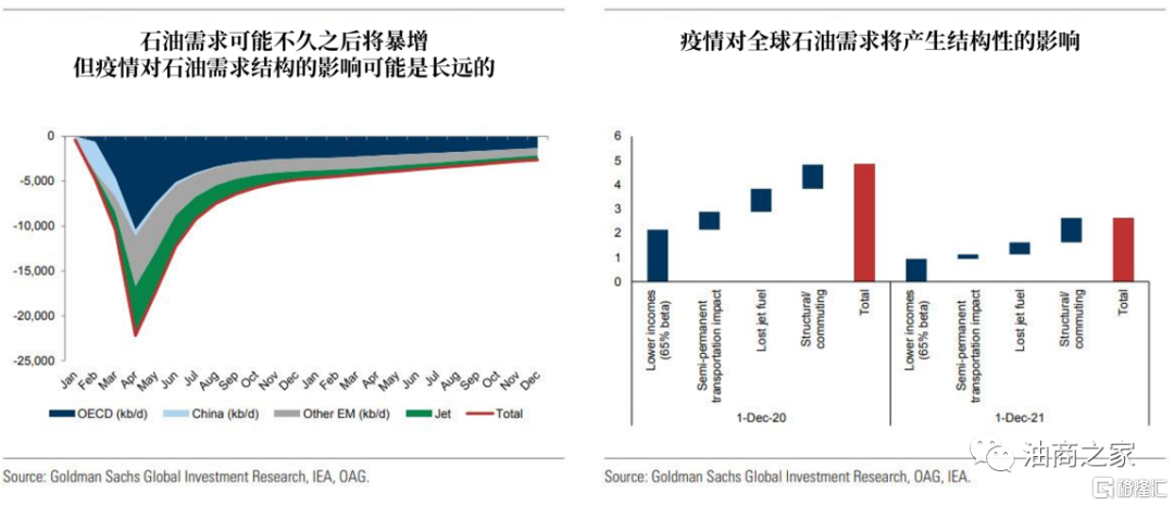 但值得注意的是,高盛虽然看好2021年的油价,但下调了2020年下半年的目标油价,认为2020年第四季度的石油需求将下降,比新冠肺炎疫情爆发之前下降500万桶/日。理由是: