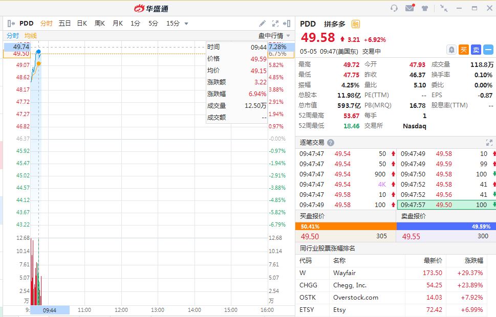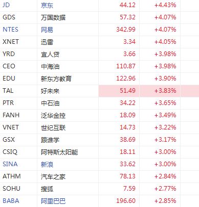 知名中概股全线上涨,拼多多大涨近7%,京东涨超4%,阿里巴巴涨近3%。