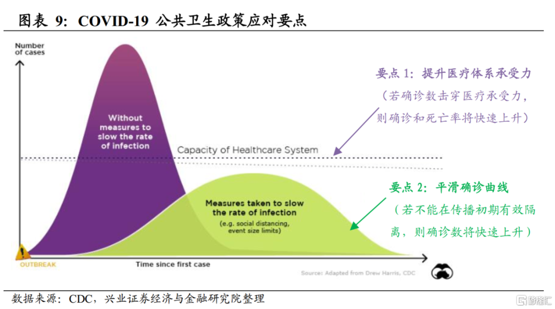 简单理解来看,公共卫生政策干预有两大要点:首先通过有效识别和隔离平滑疫情发展曲线,其次通过区域间资源再分配、扩大防护资源生产和进口来提升医疗体系耐受力,从而降低确诊数击穿医疗安全垫导致确诊和死亡率快速上升的风险。