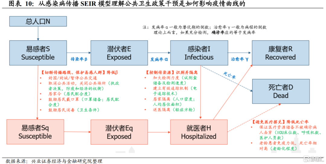 (3)最后要努力控制并降低死亡率,避免医疗挤兑。具体政策(和影响政策实施效用的变量)包括: