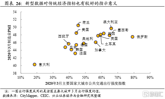 为紧密跟踪经济的快速变化,我们需要更高频的新型数据库。在新冠肺炎疫情发展快速,经济情况变化剧烈的情况下,传统的经济指标如GDP、PMI、生产等更新频率相对较低,反应经济形势的变化不够敏锐。在此情景下,我们需要更新频率更高、覆盖范围更广的新型数据对经济变化进行追踪。从2月11日专题报告《复工进行到哪儿了——大数据的正确打开方式》开始,我们对中国返程复工情况进行了高频跟踪,就发现在交运、卫星等各种新型指标中,居民活动等交通数据对经济具有较好的追踪意义。