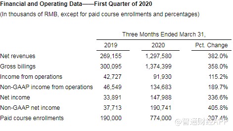 一季度净营收为12.98亿元,同比增长382%,超出预期的11.5亿元;学费收入同比增长358%,达到13.74亿元。