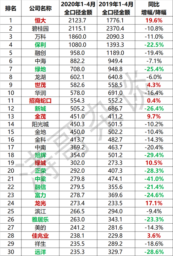 1、恒大1-4月破2000亿,同比增长近20%,坐上头把交椅